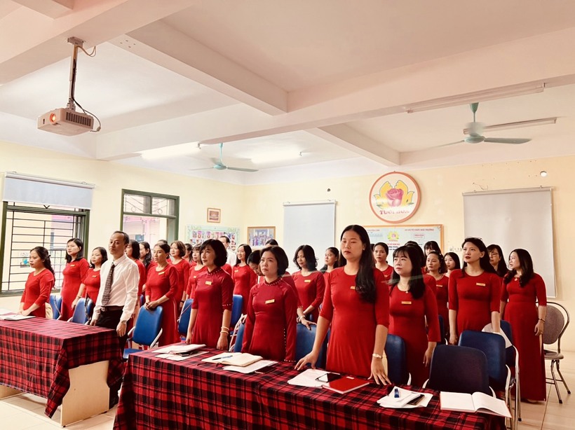 Đồng chí Hiệu trưởng Lê Thị Trâm Anh đã ghi nhận sự nỗ lực cố gắng phấn đấu của tập thể và đưa ra nhiệm vụ cụ thể của năm học 2022 – 2023 phấn đấu giữ vững danh hiệu “Tập thể Lao động Xuất sắc cấp Thành phố”; Bằng khen của UNBG Thành phố HN” và  được tặng “Bằng khen của Bộ giáo dục và đào tạo Hà Nội” Mỗi cá nhân cần phát huy tốt vai trò chủ động, sáng tạo, trách nhiệm để góp phần xây dựng nhà trường phát triển toàn diện.