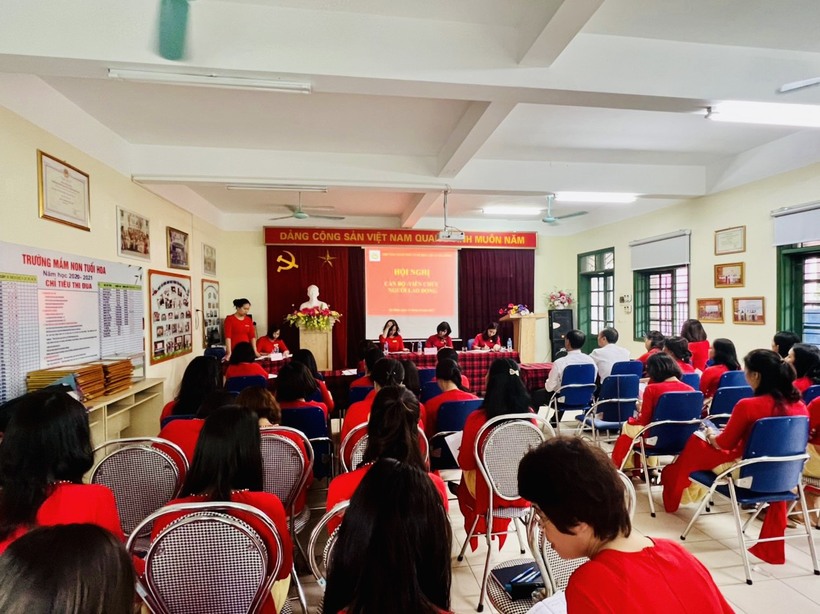 Trường mầm non Tuổi Hoa tổ chức Hội nghị Cán bộ, viên chức và người lao động năm học 2022 - 2023