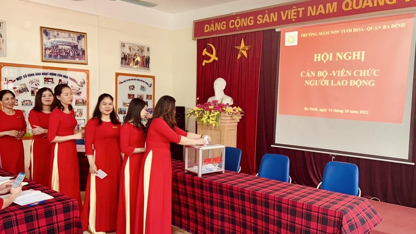 Căn cứ hướng dẫn số 221/HDLT- SGDĐT-CĐN ngày 10/07/2021 của UBND thành phố và LĐLĐ thành phố Hà Nội; Hướng dẫn tổ chức Hội nghị Cán bộ, công chức, viên chức người lao động trong các nhà trường thực hiện theo hướng dẫn liên tịch số 2471/HD-UBND-LĐLĐ ngày 10/11/2021 của UBND và LĐLĐ quận Ba Đình; Ngày 14/10/2022 Trường mầm non Tuổi Hoa tiến hành mở Hội nghị cán bộ, viên chức, người lao động năm học 2022 – 2023