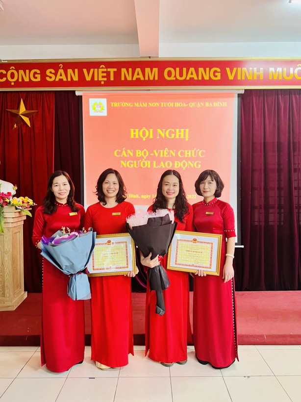 Tại Hội nghị, đồng chí Lê Thị Trâm Anh  – Bí thư Chi bộ-  Hiệu trưởng nhà trường đã tổng kết thi đua và báo cáo đánh giá kết quả thực hiện Nghị quyết Hội nghị Cán bộ, viên chức, người lao động năm học 2021-2022, trong bối cảnh đại dịch COVID-19 đầy khó khăn, bằng sự nỗ lực của cả tập thể Trường Mầm non Tuổi Hoa đã đạt danh hiệu Tập thể Lao động Xuất sắc cấp Thành phố, Bằng khen của UBND thành phố Hà Nội. Những thành tích đã đạt được của năm học 2021-2022 sẽ là động lực phấn đấu cho năm học mới 2022 - 2023.