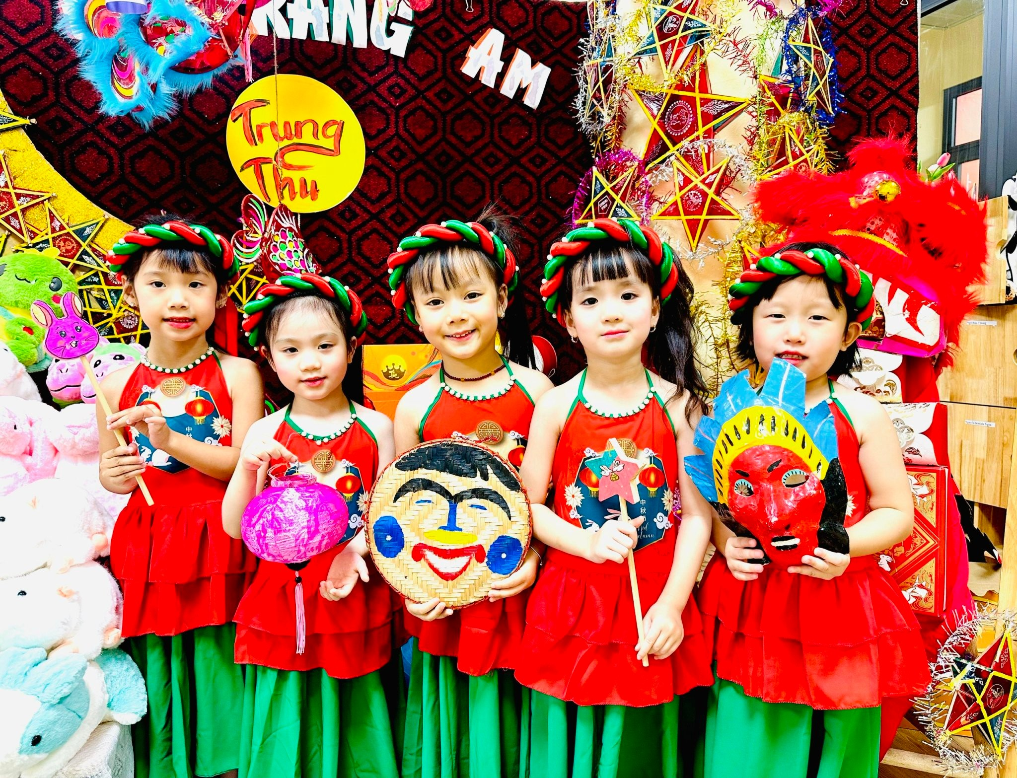 Các bé khoác lên mình chiếc áo rực rỡ của tuổi thơ . Những chiếc đèn cá bơi lội trong ánh sáng lung linh, trăng lấp lánh treo cao cùng những vì sao đung đưa trong gió – tất cả hòa quyện tạo nên một khung cảnh vừa ấm áp, gần gũi, vừa rạng rỡ, diệu kỳ tạo nên cho các bé mùa trăng ấm áp hi vọng in đậm về tuổi thơ trong ký ức trẻ thơ . 📸 Để lưu lại những khoảnh khắc rực rỡ, và gửi lại một lời thì thầm dịu nhẹ đến mùa trăng năm cũ: " Các cô giáo lớp B2 đã rất cố gắng tạo một studio nhỏ cho các mẫu nhí thể hiện .Xin mời ba mẹ cùng xem lại những bức hình siêu dễ thương trong mùa trăng của các mẫu nhí B2 nhé