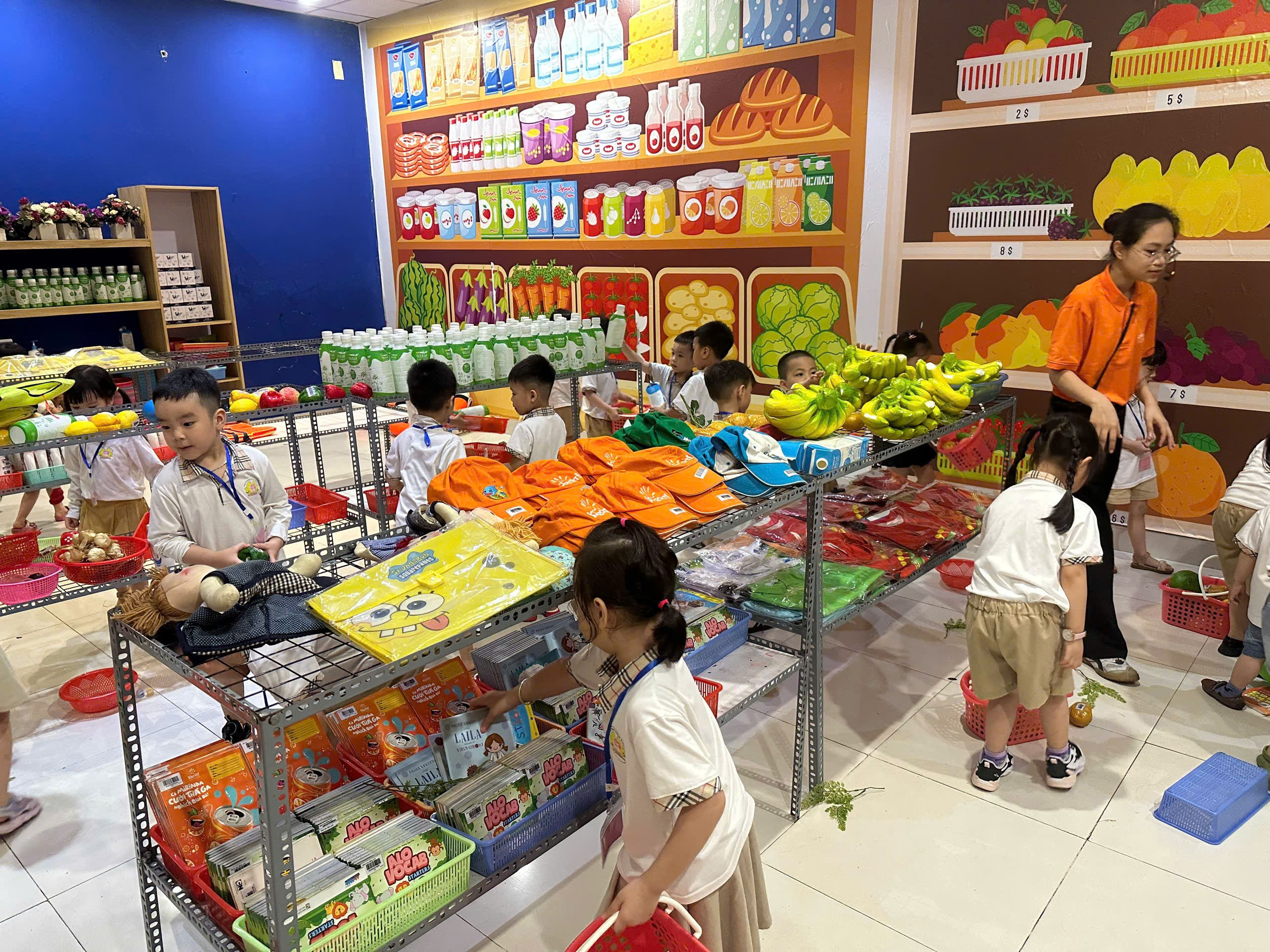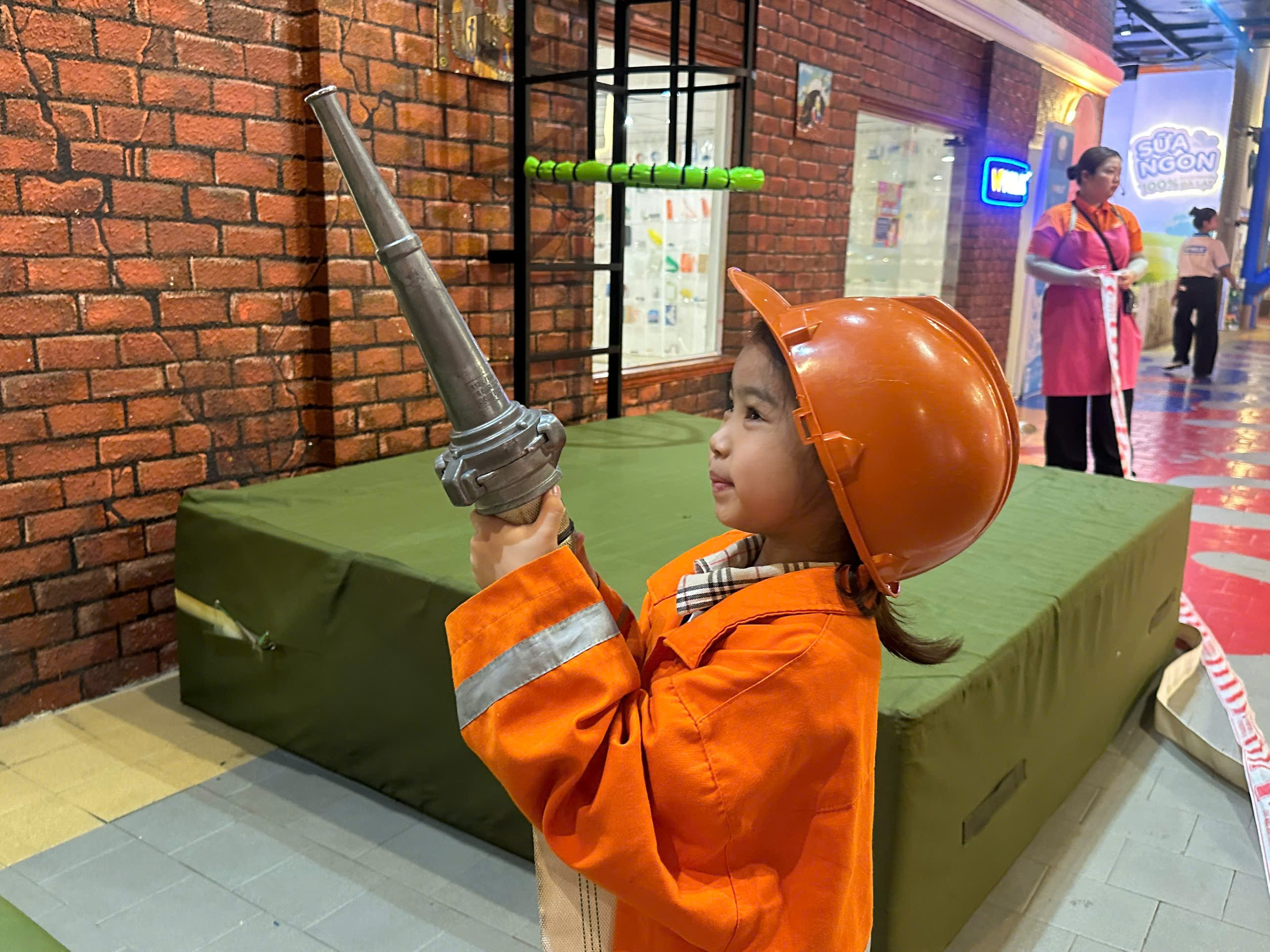 Tại khu vui chơi các bé được hóa thân thành phi công hay nhân viên bán hàng, từ đó phát huy trí tưởng tượng và kỹ năng giao tiếp.