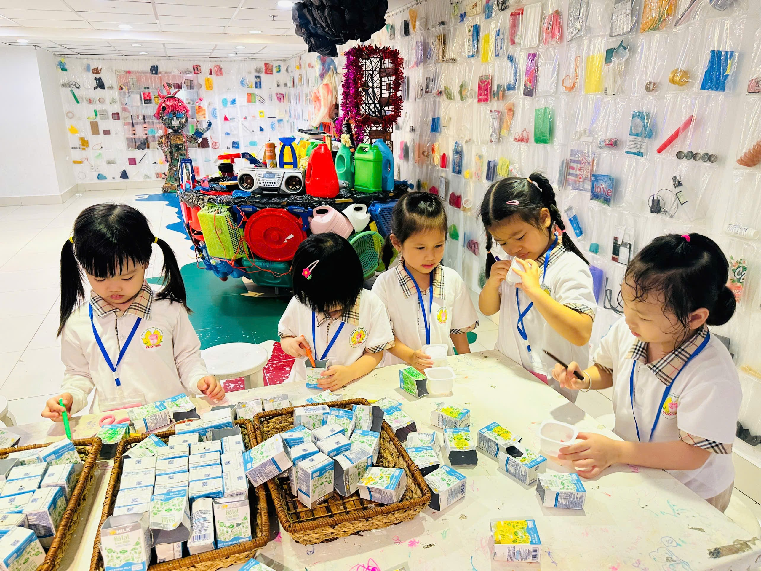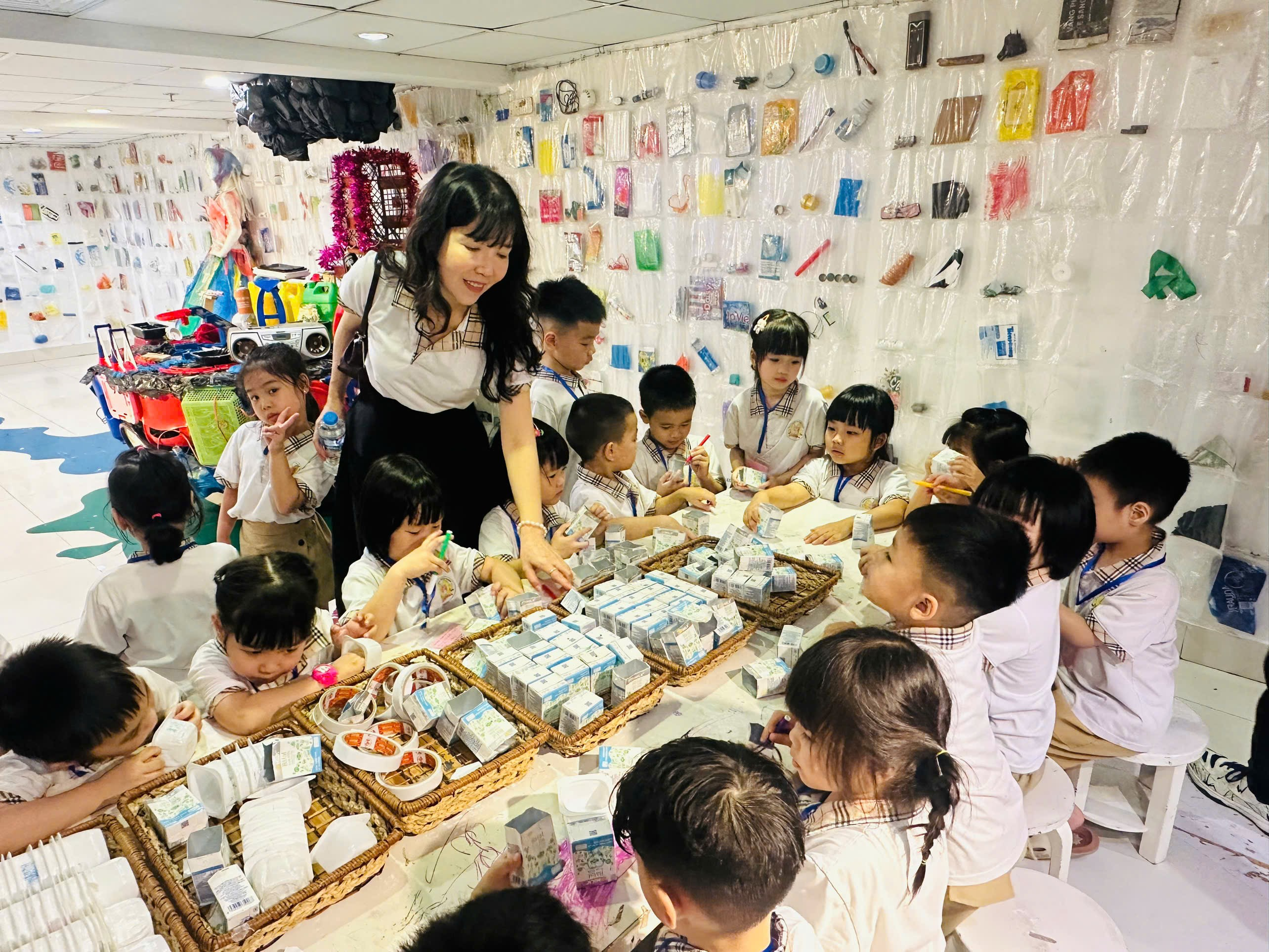 Bác HT Thanh Hoa hướng dẫn các con làm đồ tái chế