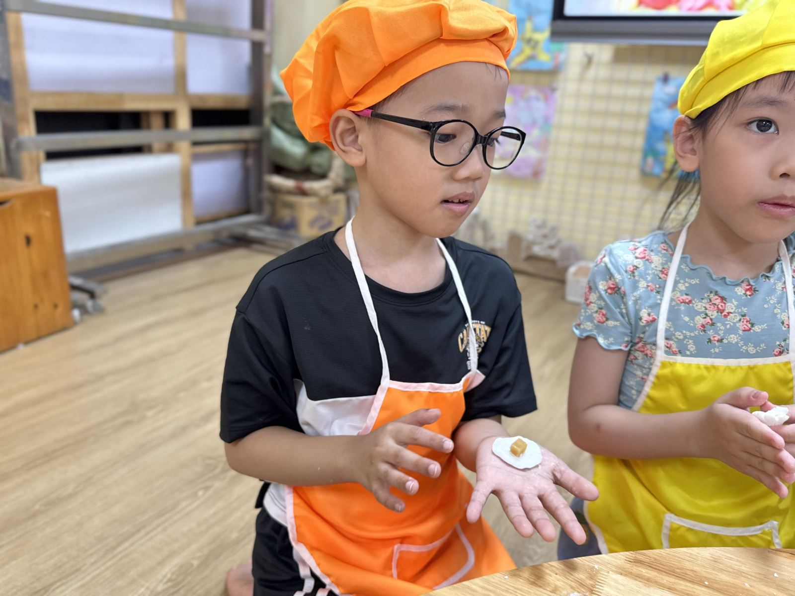Các bạn nhỏ hào hứng chuẩn bị các nguyên liệu để làm bánh