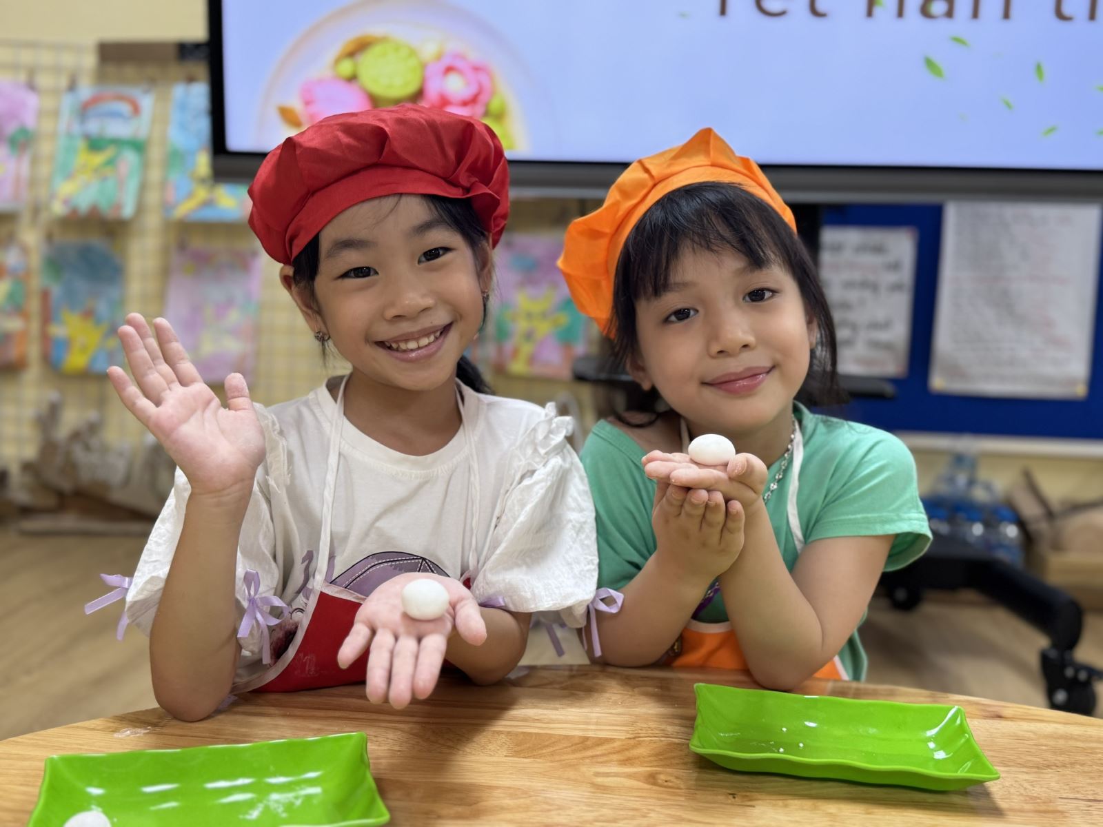 Các bạn khéo léo nặn những viên bánh thật tròn, thật xinh