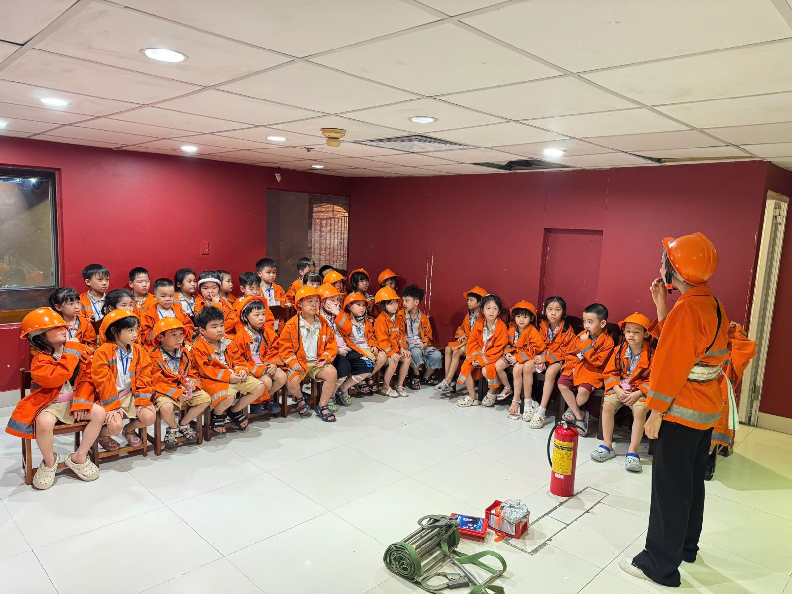 Các bé được thực hành làm người lính cứu hỏa