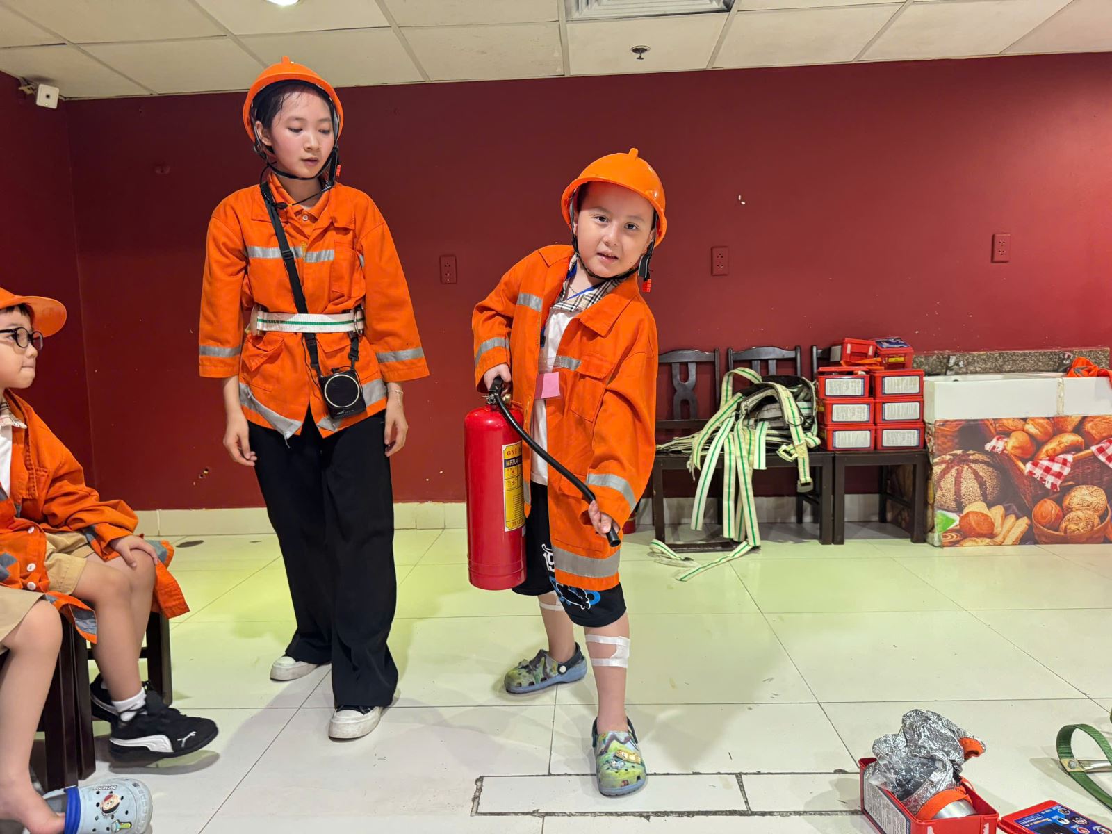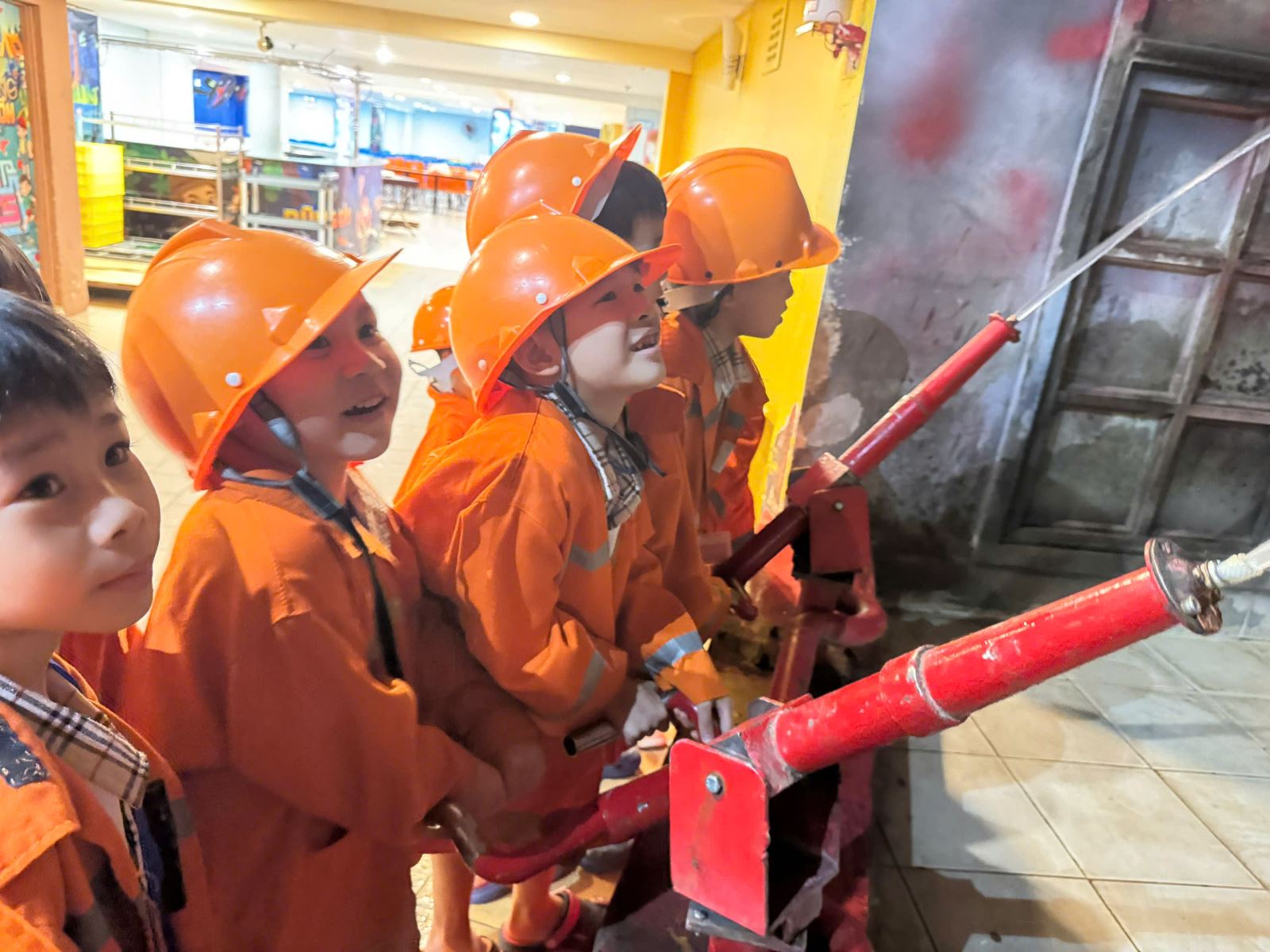 Các bé hóa thân thành những người lính cứu hỏa dũng cảm