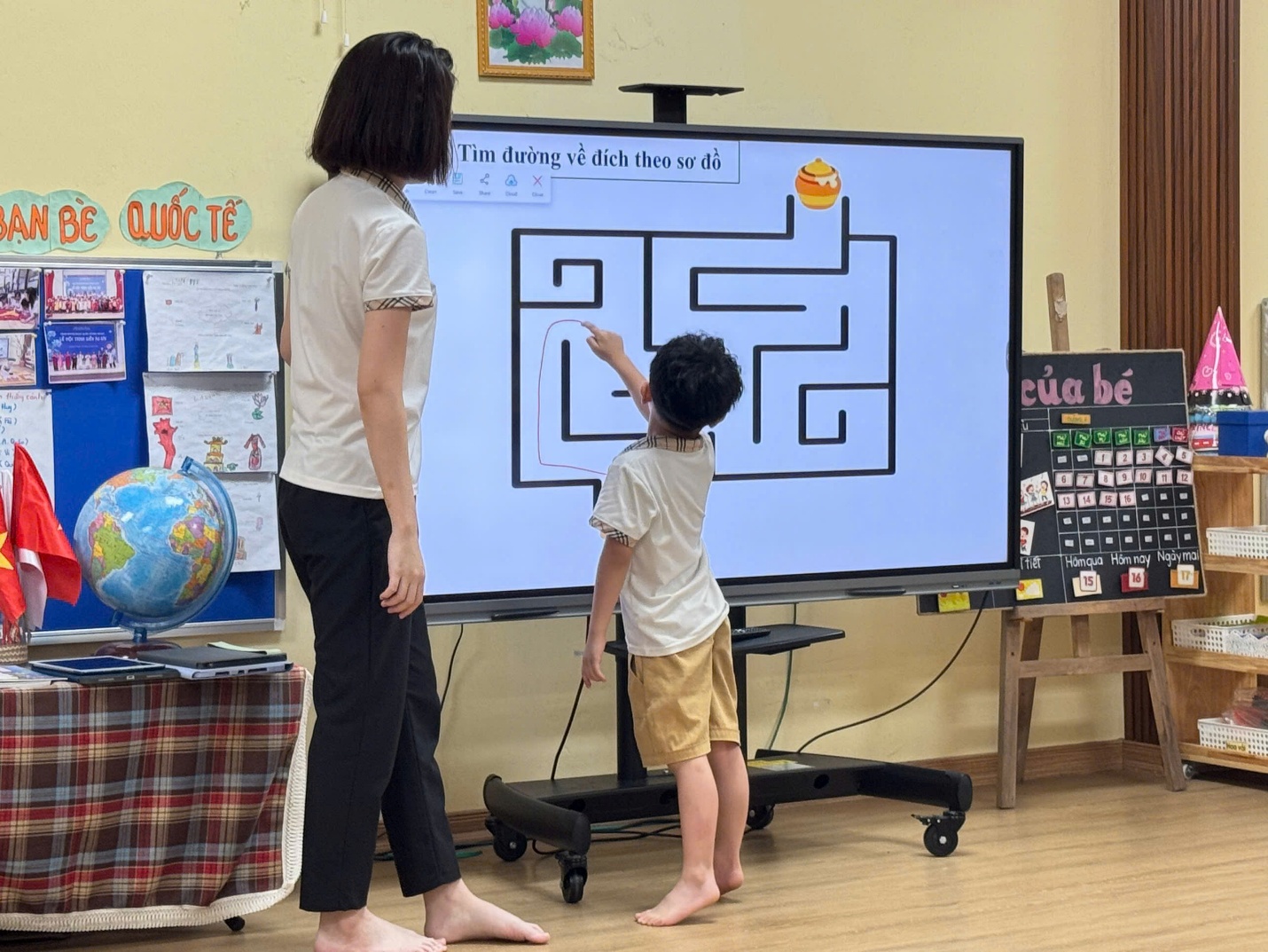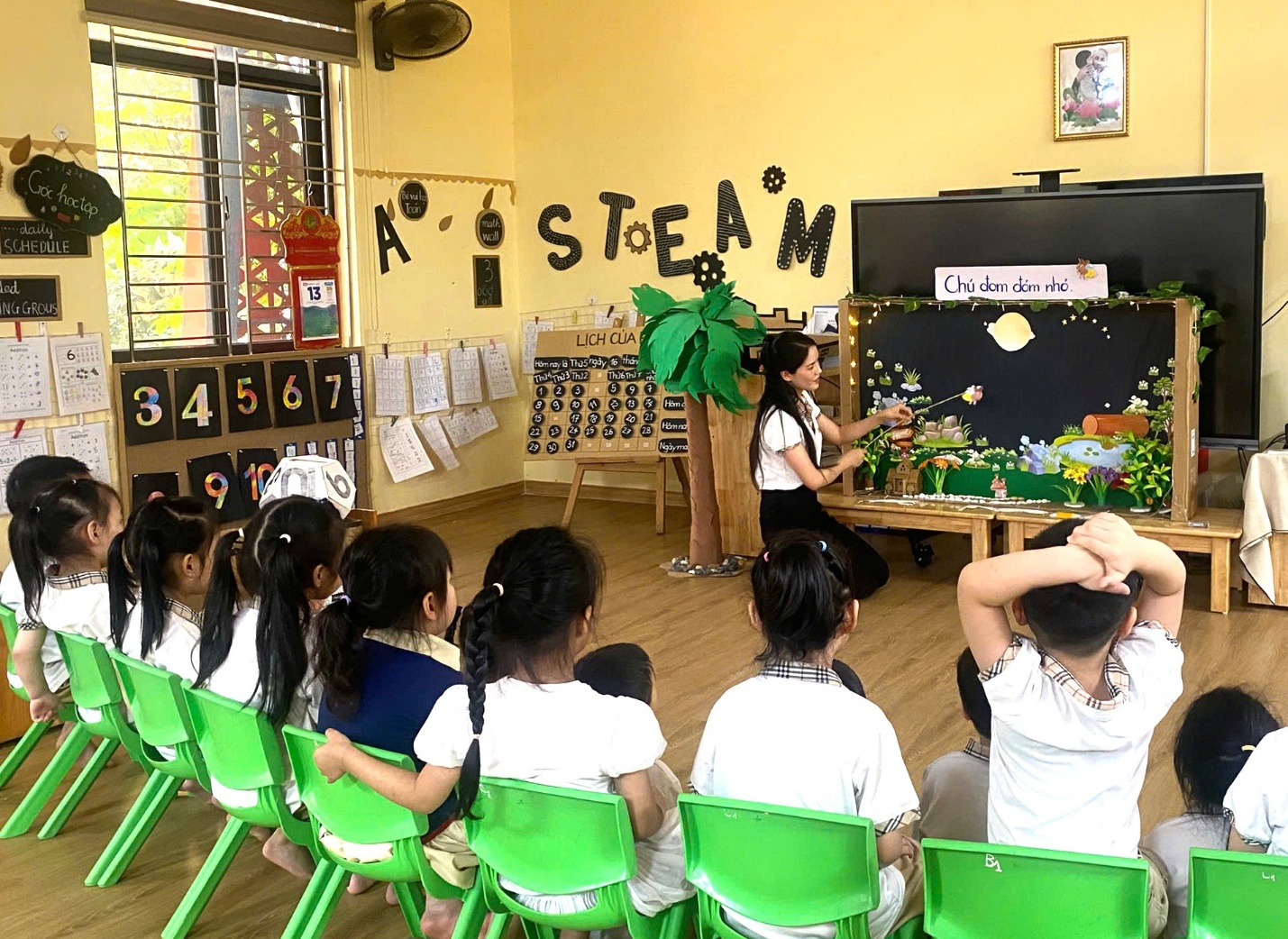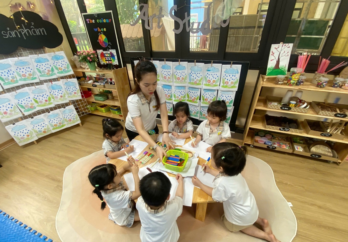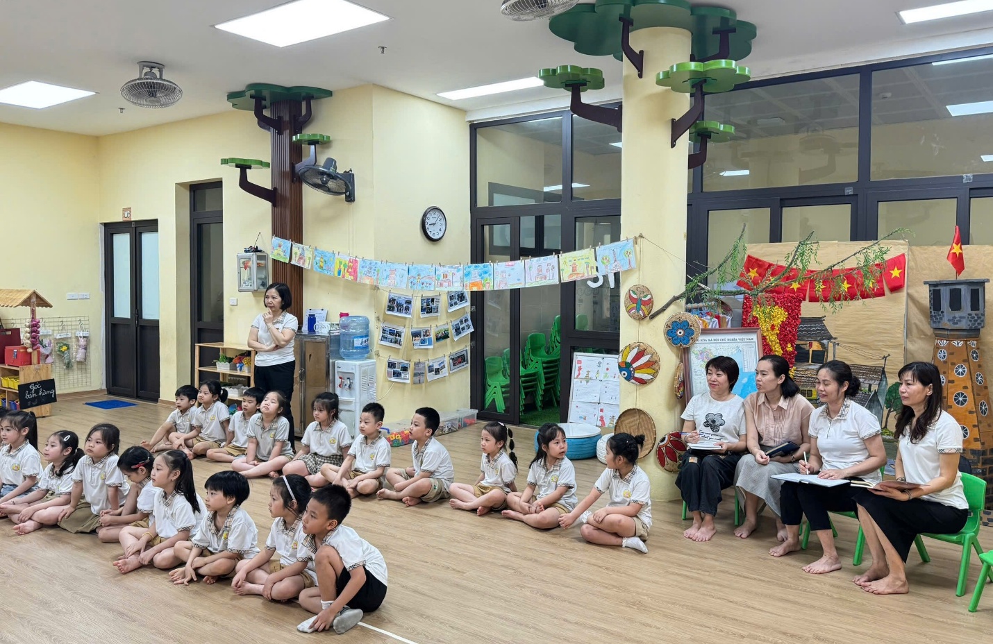 Trong việc tổ chức các hoạt động giáo dục, đội ngũ giáo viên Trường Tuổi Hoa đã thẩm thấu và vận dụng linh hoạt phương pháp dạy học kích thích tư duy vào chương trình giảng dạy lấy trẻ làm trung tâm, tư duy làm cốt lõi. Giáo viên Chuyển đổi từ "Cung cấp kiến thức cho trẻ" sang "Kích thích trẻ đặt câu hỏi": Các giờ học được thiết kế dựa trên các tình huống thực tế, thúc đẩy trẻ suy luận, phán đoán và đưa ra giải pháp sáng tạo. Kế hoạch giáo dục năm học 2025 - 2026 được điều chỉnh phù hợp với đặc điểm tâm sinh lý của trẻ, tích hợp khéo léo các kỹ thuật đặt câu hỏi gợi mở mà các cô giáo đã được học tập, trải nghiệm thực tế tại Trường CLC 20/10.