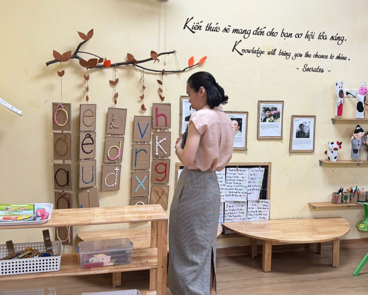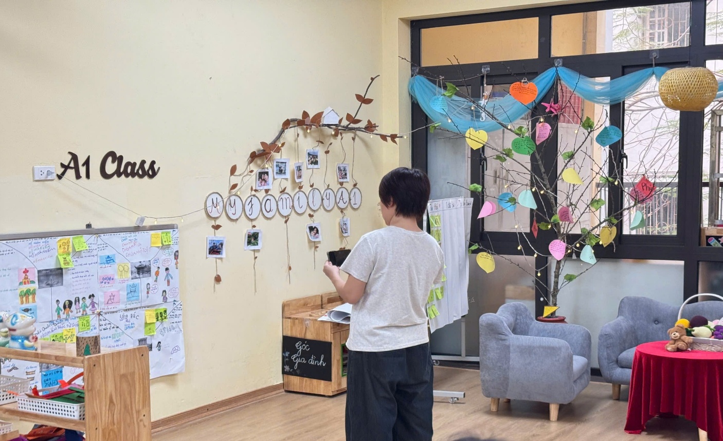 Các cô giáo trường mầm non Tuổi Hoa học tập được những kinh nghiệm quý báu thực tế tại Trường CLC 20/10 về thiết kế môi trường, từ đó thổi một luồng sinh khí mới vào không gian học tập của trẻ. Các góc hoạt động không còn đơn điệu mà được thiết kế theo hướng "mở", khuyến khích trẻ tự do lựa chọn và khám phá. Ưu tiên sử dụng các nguyên vật liệu thiên nhiên, đồ dùng tái chế và các bộ công cụ kích thích tư duy logic, giúp trẻ không chỉ chơi mà còn đang "giải quyết vấn đề". Với không gian truyền cảm hứng, mỗi mảng tường, mỗi góc nhỏ đều trở thành một "người thầy thầm lặng", khơi gợi sự tò mò và khả năng quan sát của các bé.