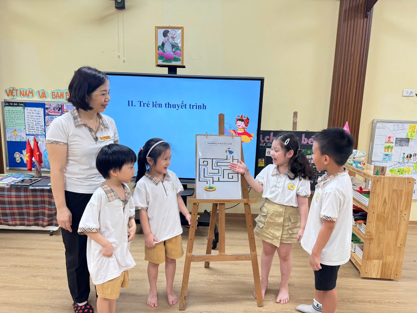 Trẻ mạnh dạn thuyết trình ý tưởng của nhóm